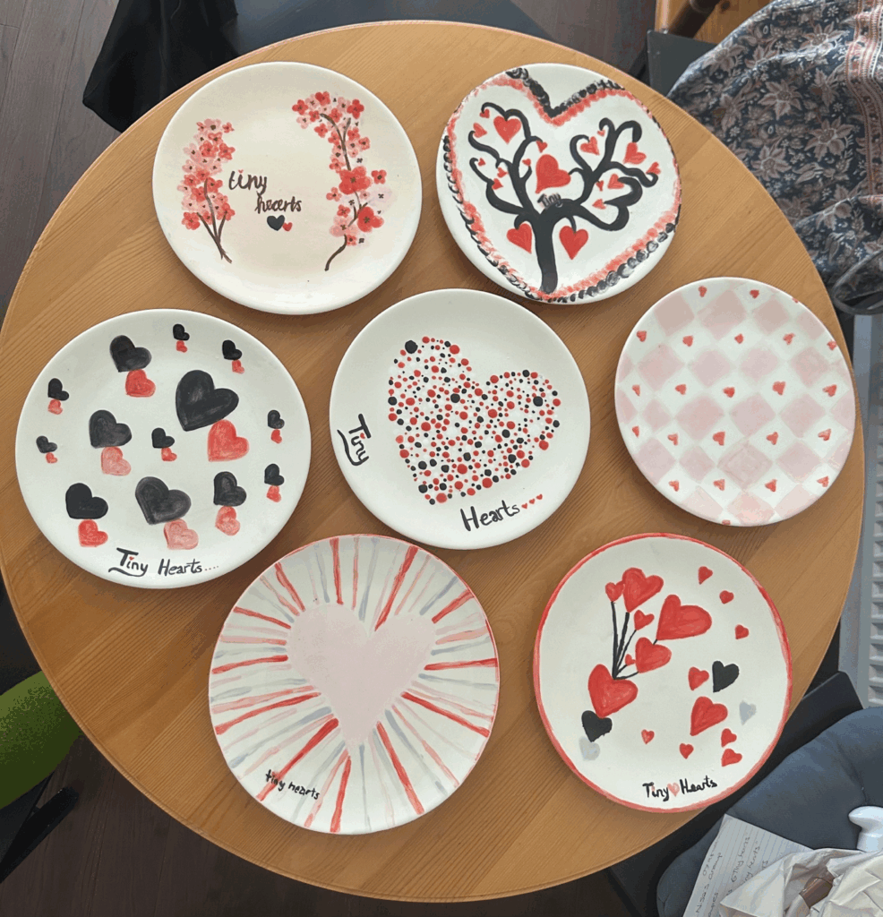 We traded our laptops for paintbrushes and emails for laughter, gathering in a cozy studio full of light, chatter, and colour. The brief? Simple: design a plate inspired by Tiny Hearts. The results? Anything but simple.